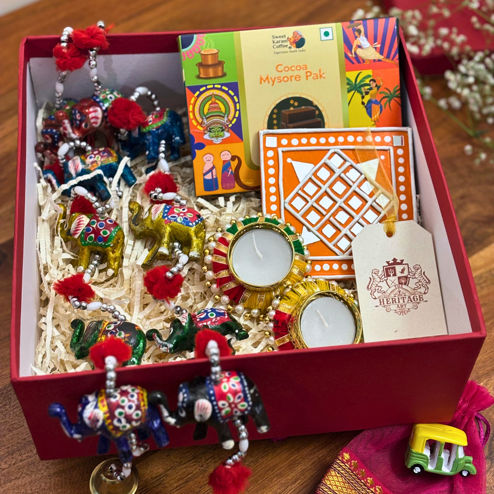 Rooted in the spirit of celebration, the Parampara Gift Box brings together the rich symbolism of Indian festivities. With handcrafted décor and a box of mithai, it’s a perfect way to honor traditions, gift love, and light up homes with joy.
