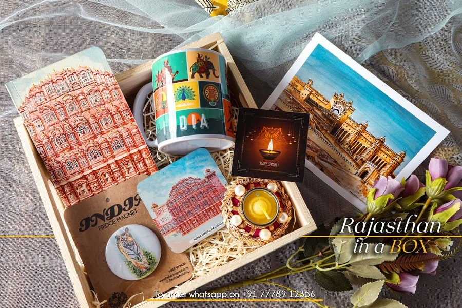 The Hampers at The Heritage Art are every heritage and history enthusiast’s delight. The Rajasthan in a Box Gift Hamper captures the wonder of the land of King and queens in a box.