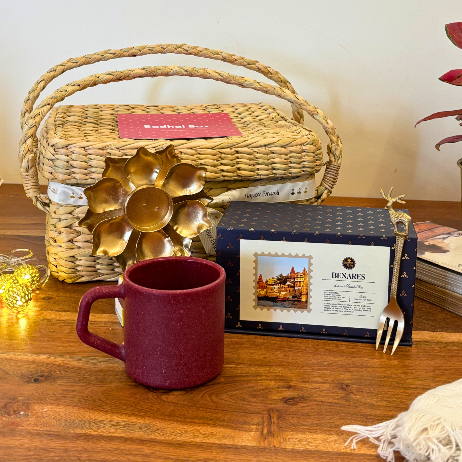 Rooted in sustainability and crafted with care, The Earth Box is a soulful gift hamper that blends earthy aesthetics with mindful living. From warm brass accents to organic sips and eco-friendly design, this is more than a gift — it’s a quiet ritual of gratitude and grounding.